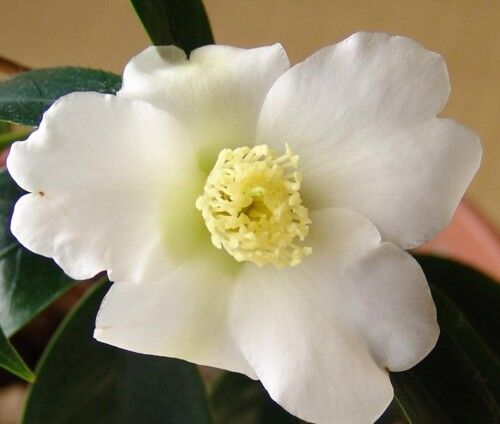 「花のほほえみ」より 白椿 数年前、挿し木をした「白椿」に、初 めて花が咲きました。